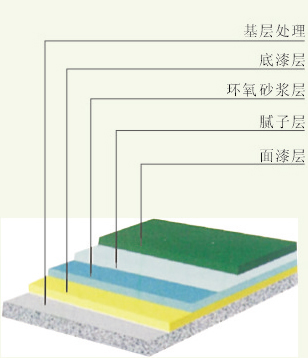 用環(huán)氧中途材料調(diào)配石英砂至施工所要求的厚度 | 環(huán)氧底漆或環(huán)氧中涂 |